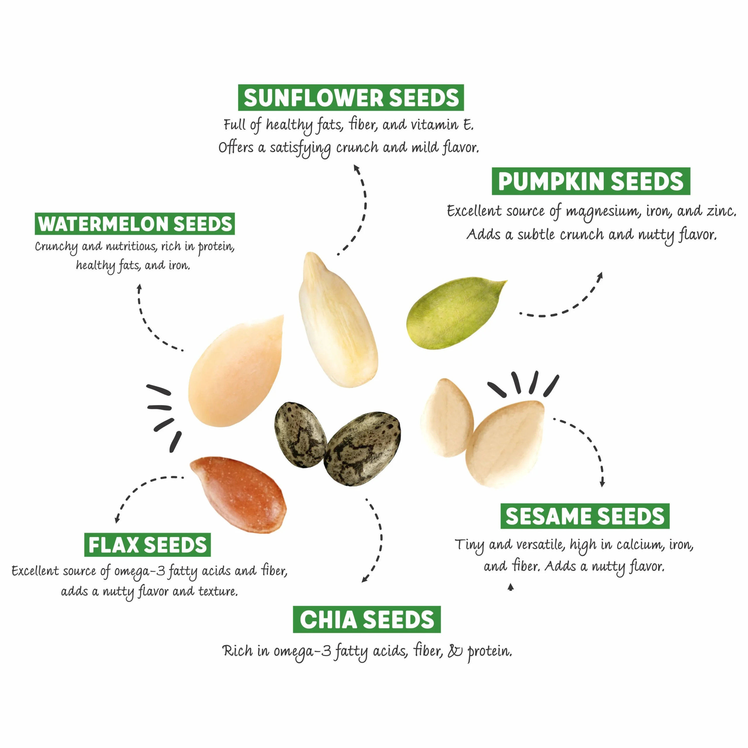 Boost your daily nutrition with Pro-V Healthy Seed Mix, a powerhouse blend of premium-quality, chemical-free seeds carefully selected for their exceptional health benefits. Packed with essential vitamins, minerals, antioxidants, and healthy fats, this mix is the perfect addition to your balanced diet. Whether you’re looking for a high-protein snack, improved digestion, or enhanced energy levels, our seed mix is a must-have for a healthier lifestyle.